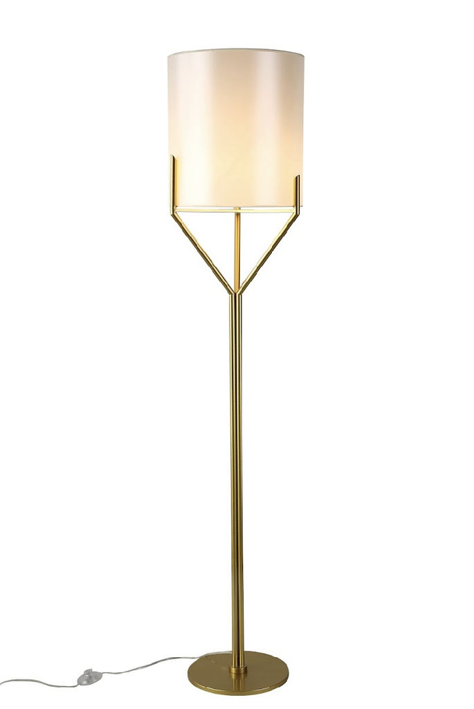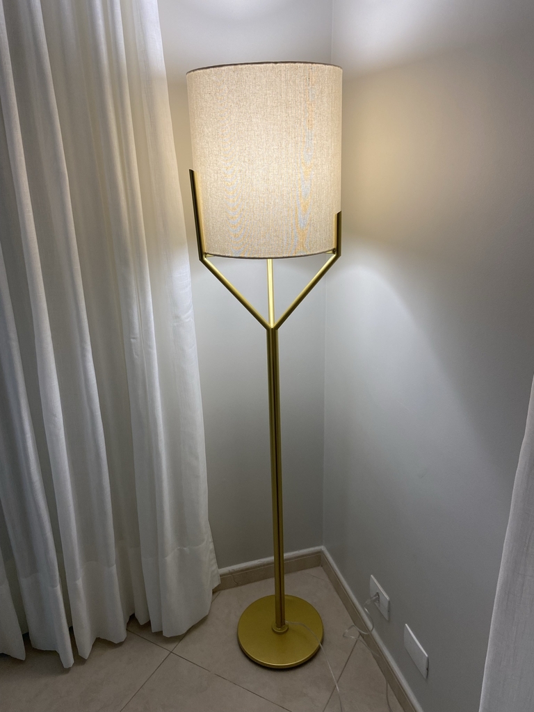 Abajur Luminária de Chão Coluna Dourado Cúpula Pianta Tecido Off